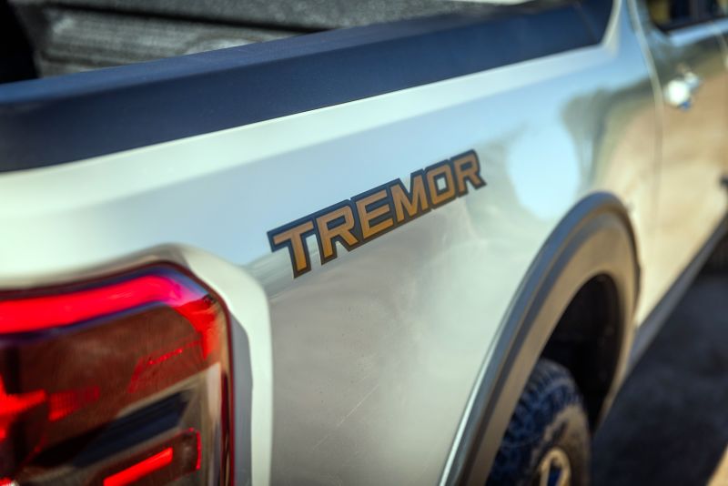 La versión Tremor ofrece un diseño expresivo y funcional, con una parrilla con barra transversal en color naranja cobre, ganchos de rescate delanteros en el mismo tono, calcos característicos “Tremor” en capó y laterales, neumáticos 235/65 R17 A/T con llantas de aleación de aluminio con acabado negro y detalles en color naranja cobre. En la caja de carga, esta versión ofrece iluminación LED y toma de 120V con Inverter de 400W.