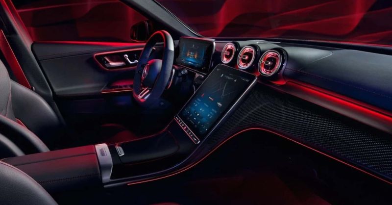 En el interior aparecen asientos deportivos, tapizados que combinan Artico y microfibra Microcut en color negro y costuras y cinturones de seguridad de color rojo. Agrega, demás, volante AMG Performance multifunción con comandos hápticos y pedales deportivos.