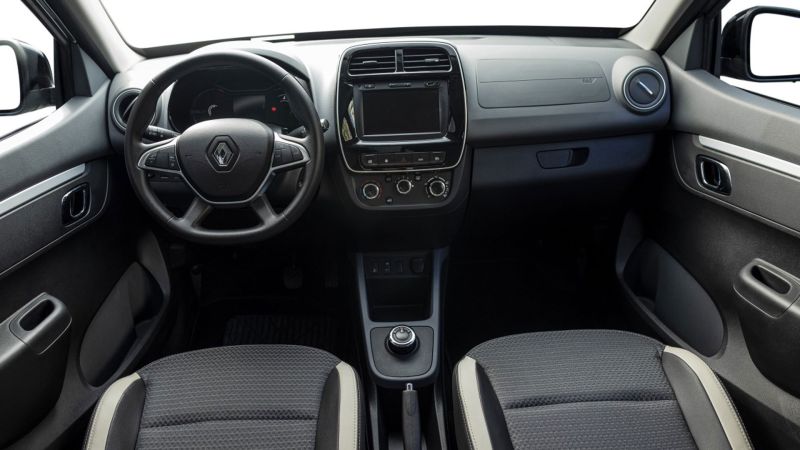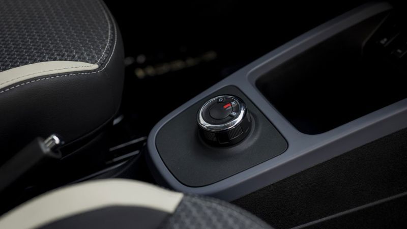 El Kwid E-Tech dispone de un modo de conducción ECO, que se activa a través de un botón en la consola central, que limita la potencia a 33 kW y la velocidad máxima a 100 km/h y hace que el frenado regenerativo sea más fuerte.